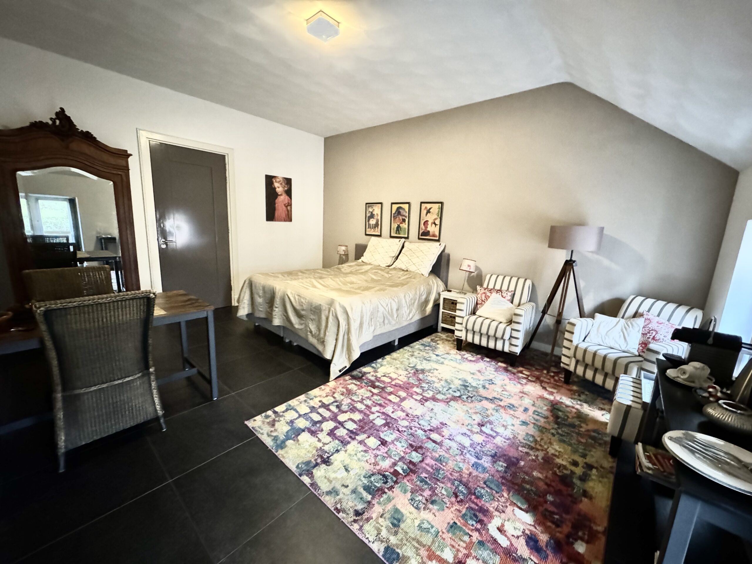 In de achterkamer heb je een comfortabel zitje, waar je tv kunt kijken of een boek lezen. De kamer beschikt daarnaast over een eettafel, waar ’s morgens het ontbijt wordt geserveerd. Er is een Nespresso koffie apparaat, een waterkoker en thee en koffie pads, zodat je een lekker kop koffie of thee kunt maken. In de hal is er de beschikbaarheid over een kleine koelkast. In de achterkamer kun je comfortabel een of meerdere dagen verblijven.